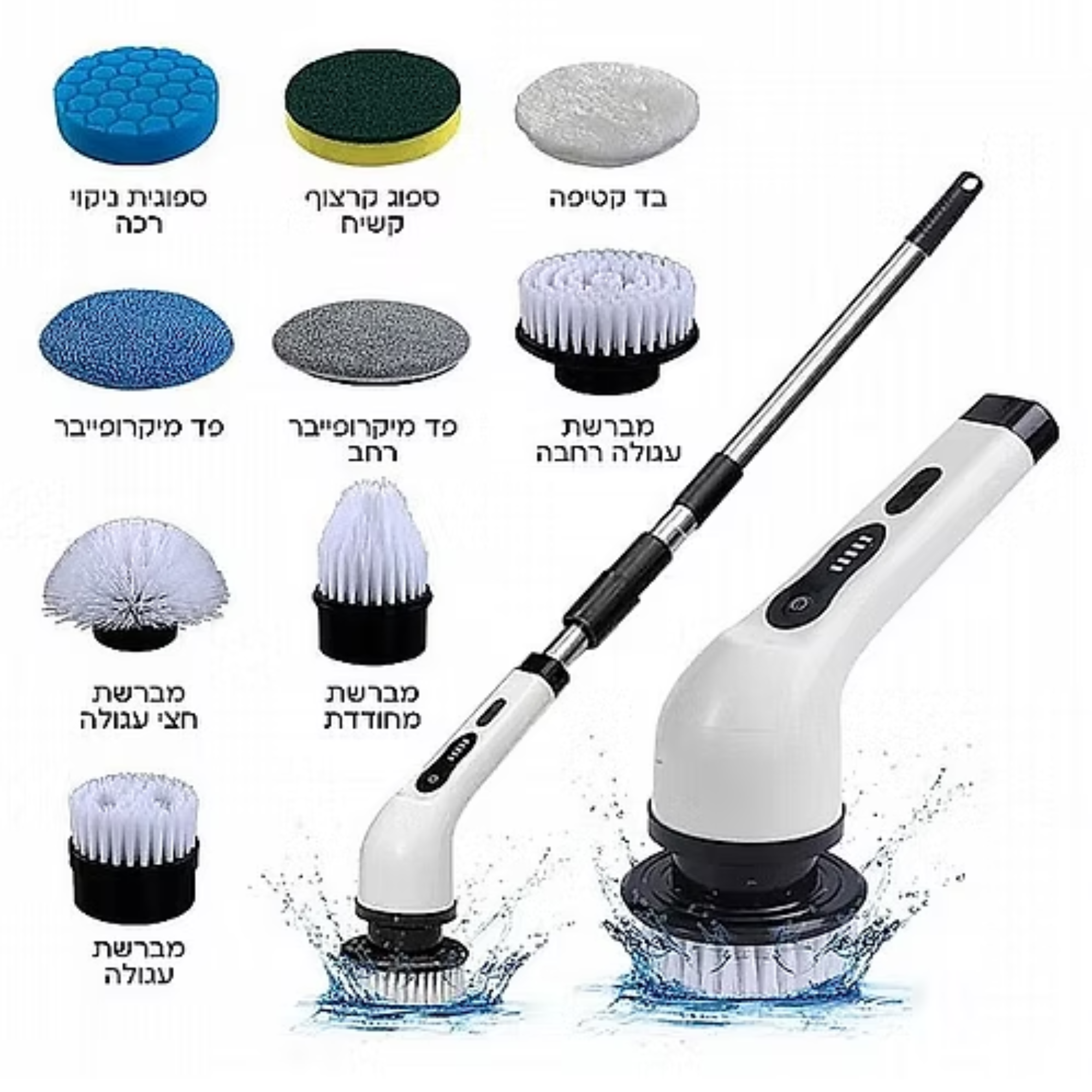 מברשת ניקוי חשמלית עם 9 ראשים מתחלפים